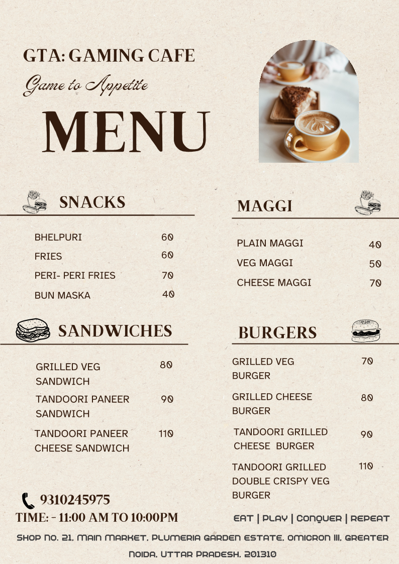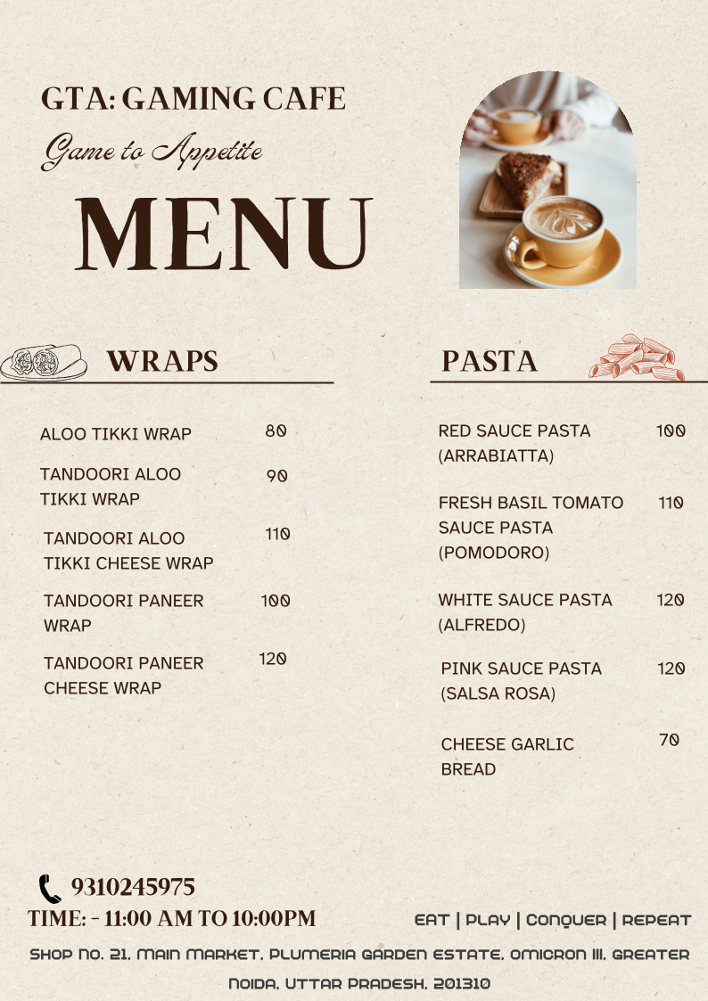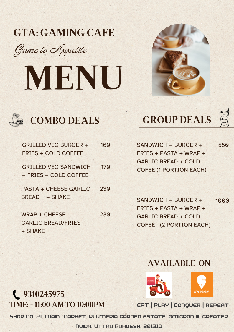 GTA Gaming Cafe Menu